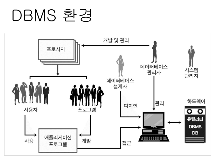 - 사람(시스템 관리자, 데이터베이스 관리자 및 설계자, 프로그래머, 시스템 사용자)