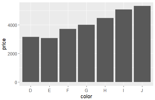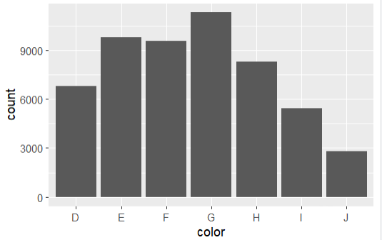 ggplot(diamonds, aes(color)) + geom_bar()