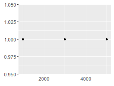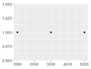 df <- data.frame(x = c(1, 3, 5) * 1000, y = 1)