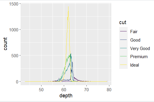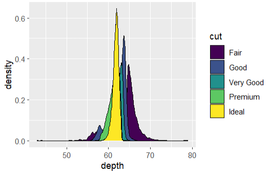 ggplot(diamonds, aes(depth, fill = cut, colour = cut)) +
