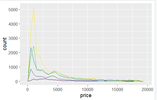 ggplot(diamonds, aes(price, colour = cut)) +