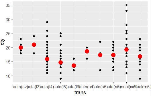 ggplot(mpg, aes(trans, cty)) +