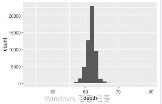 ggplot(diamonds, aes(depth)) +
