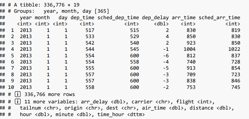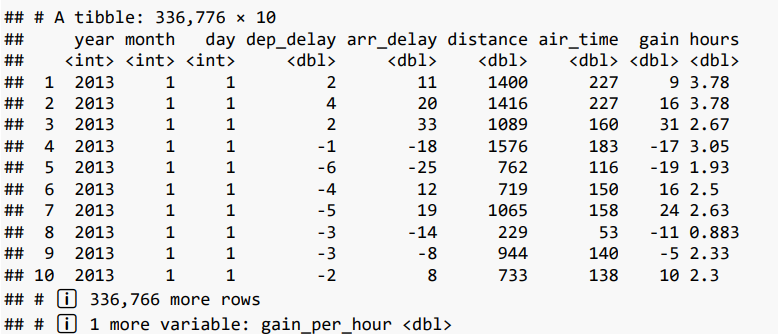 summarise(flights, delay = mean(dep_delay, na.rm = TRUE))