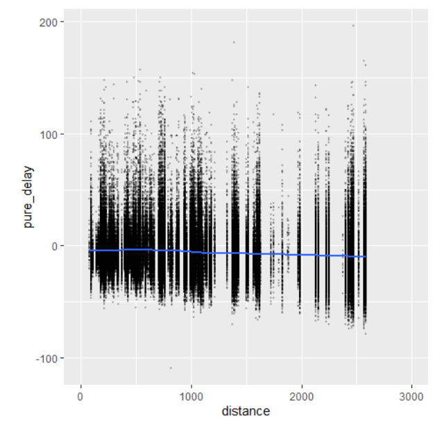ggplot(aes(distance,pure_delay))+geom_point(alpha=0.2,size=0.2)+