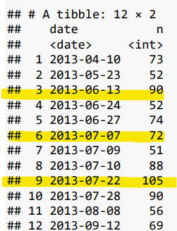 summarize(n = sum(pure_delay>60,na.rm=TRUE)) %>%