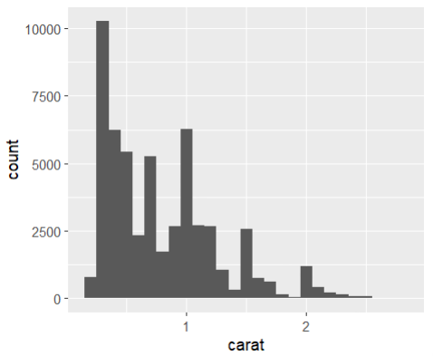 ggplot(data = smaller, mapping = aes(x = carat)) +