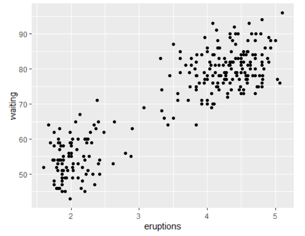 geom_point(mapping = aes(x = eruptions, y = waiting))