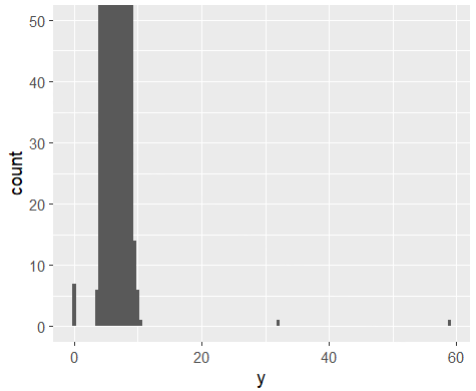 - y 의 범위가 60 까지 되어 있으나 10 에서 60 사이에는 자료가 거의 보이지 않음.