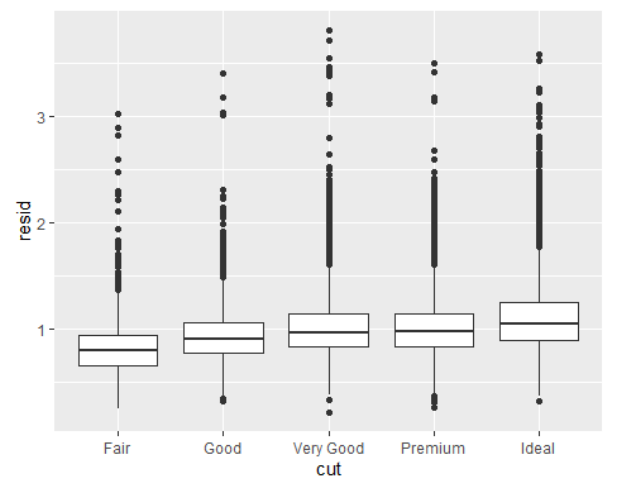 geom_boxplot(mapping = aes(x = cut, y = resid))