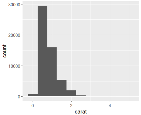 geom_histogram(mapping = aes(x = carat), binwidth = 0.5)