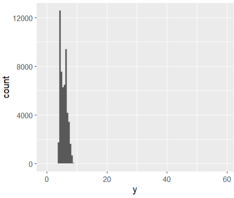 geom_histogram(mapping = aes(x = y), binwidth = 0.5)