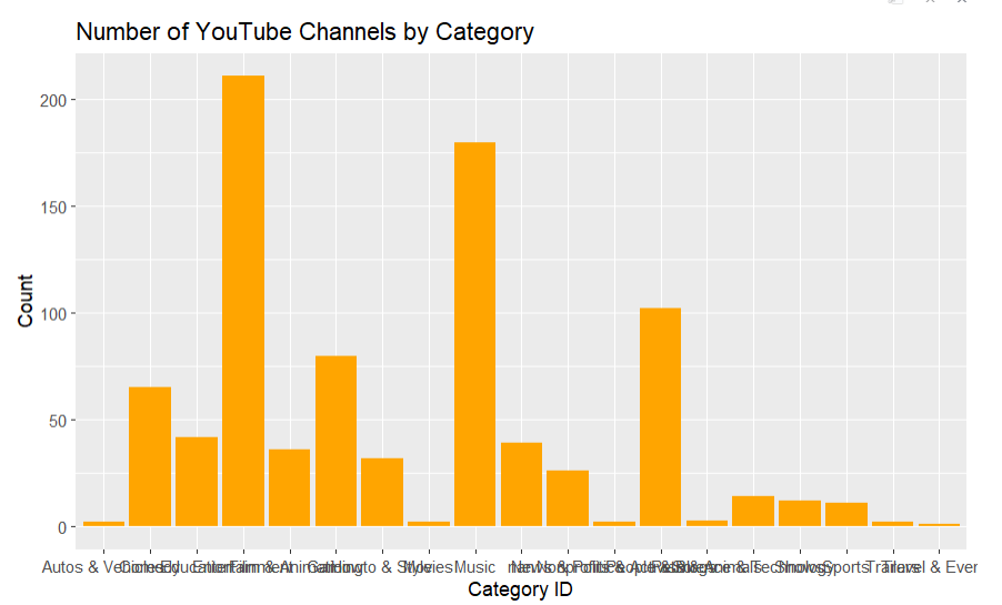$ channel_type : chr "Music" "Games" "Entertainment" "Education" ...