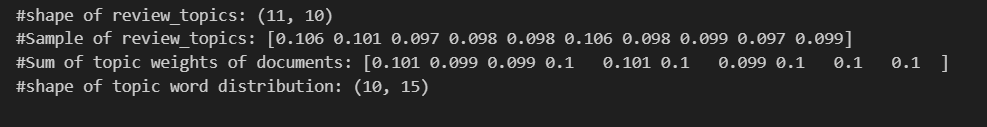 print('#Sum of topic weights of documents:', gross_topic_weights)