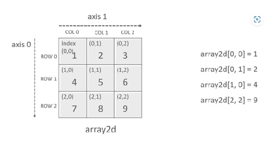 array2 = np.array([[1,2,3],[2,3,4]]) → 2차원 배열, shape(2,3) : 행2줄, 열3줄
