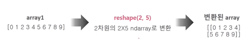 - reshape()은 ndarray를 특정 차원 및 형태로 변환