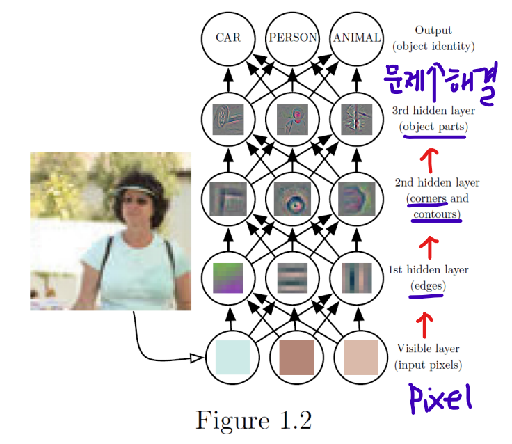 → 간단한 표현들을 깊에 쌓아 표현하는 것(과거에는 사람이 표현을 찾았으나, 기계가 표현 & 문제를 찾고 해결하는 모델)