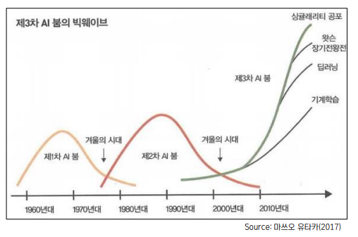 - 낙관적 견해 팽배(예: 20년 이내 기계가 사람의 모든 일을 대체할 것)