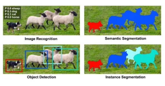 3. Instance Segmentation은 각 class의 모든 Instance를 구분하므로, 위의 사진에서 모든 염소와 개를 다른 class로 구분합니다.