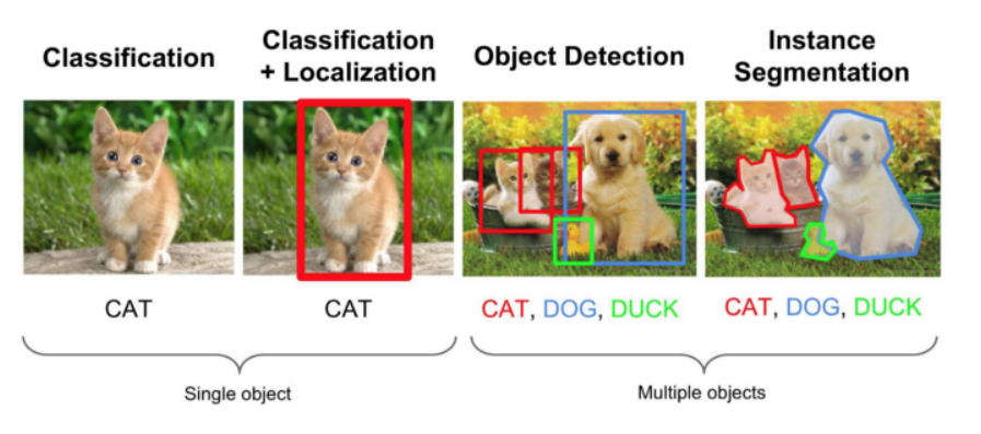 → 이미지에 있는 모든 픽셀에 대한 예측 - Instance Segmentation : 각각의 사물들을 분류 (U-NET) → 같은 Class라도 서로 다른 물체로 구분