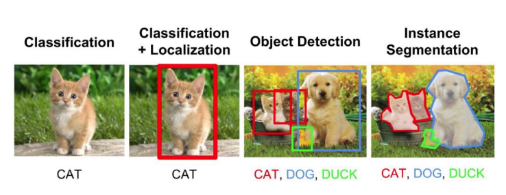 - 객체 분류(Classification): 이미지나 비디오 내에 존재하는 객체의 종류 또는 클래스를 식별하는 작업입니다. 이는 이미지 내에 여러 객체가 존재할 수 있으며, 각 객체가 어떤 클래스에 속하는지를 결정합니다. 이 작업은 주로 이미지 분류와 유사하지만, 여러 객체를 동시에 처리해야 하는 점에서 다릅니다.
