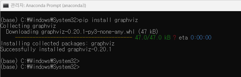 (4) anaconda prompt → 관리자권한으로 실행 → pip install graphviz 클릭