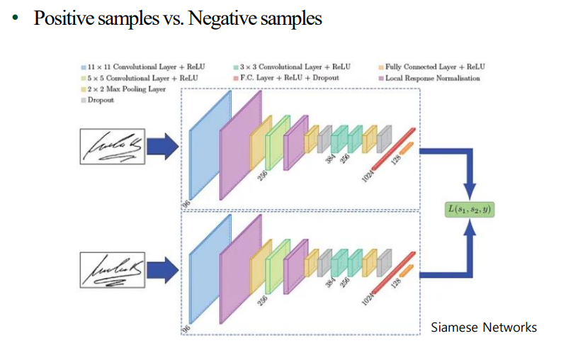 - 설명: 입력 데이터 사이의 유사도를 학습하여 양성 샘플과 음성 샘플을 구분합니다. 예를 들어, 시암 네트워크(Siamese Networks)를 사용하여 비슷한 데이터와 다른 데이터를 비교합니다.
