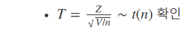 # 모분산을 모를때, t 분포 사용