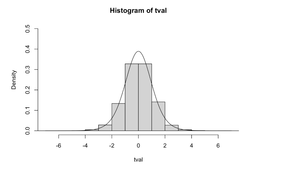 hist(tval, freq=FALSE, ylim=c(0,0.5))