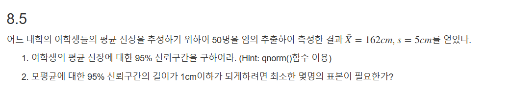 # 𝑛이 충분히 크면 표본의 표준편차 s가 모집단의 표준편차 sigma에 가까울 것이므로 sigma를 s로 대체하여 구함