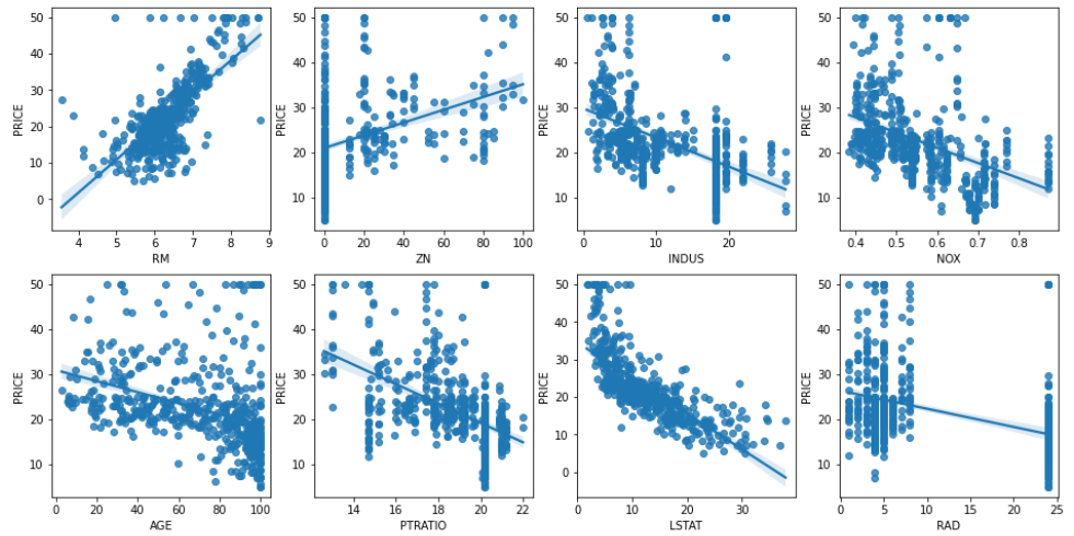 lm_features = ['RM','ZN','INDUS','NOX','AGE','PTRATIO','LSTAT','RAD']
