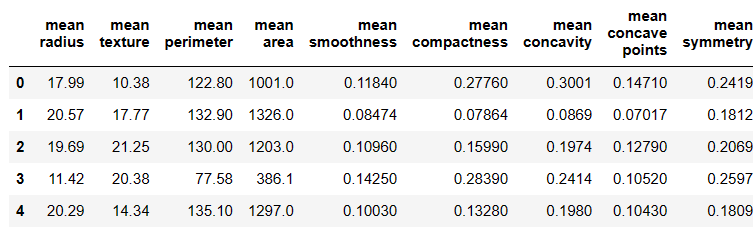 cancer_df = pd.DataFrame(data=dataset.data, columns=dataset.feature_names)