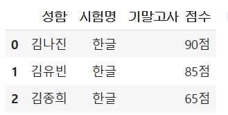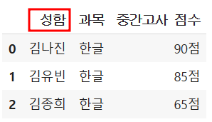 df.columns = ['이름','과목','중간고사 점수']