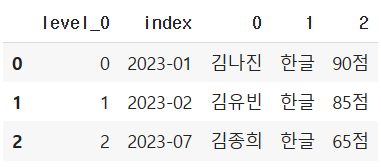 - set_index(컬럼명) : 열단위 자체가 인덱스 되는 경우 → [0] 컬럼 사라지는 문제 있음