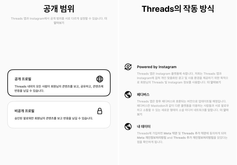 - 기존의 인스타그램으로 연동을 하면 쓰레드 탈퇴 진행 시, 인스타그램도 같이 탈퇴 됨으로 주의!