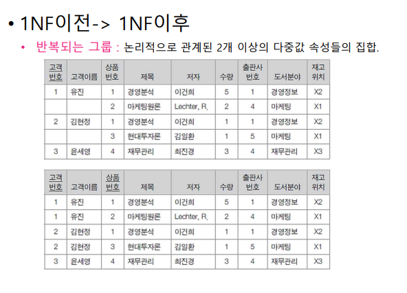 관계형 데이터베이스 테이블의 특징으로 적당하지 않는 것은? a. 열은 필드(field)또는 속성(attribute)으로 정의 b. 각 셀은 다수의 속성값으로 구성 c. 테이블은 행(row)과 열(column)로 구성 d. 행은 레코드(record)또는 튜플(tuple)로 정의 → b. 각 셀은 다수의 속성값으로 구성 관계형 데이터베이스의 기본 원칙 중 하나는 각 셀이 단일 값을 가져야 한다는 것입니다. 이를 원자성(Atomicity)라고도 합니다. 이 원칙에 따르면, 각 셀은 하나의 속성값만을 가지며, 다수의 속성값을 가질 수 없습니다. 따라서 옵션 b가 관계형 데이터베이스 테이블의 특징으로 적당하지 않습니다. SELECT 상품.상품번호, 상품.상품제목, 재고.재고번호, 재고.구분, 재고.판매가격, 재고..