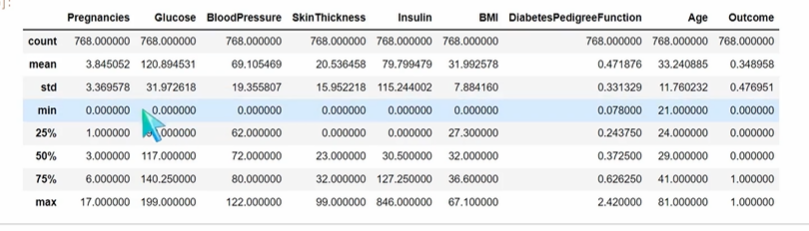 zero_features = ['Glucose', 'BloodPressure','SkinThickness','Insulin','BMI']