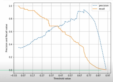# threshold 값 X 축의 Scale을 0.1 단위로 변경